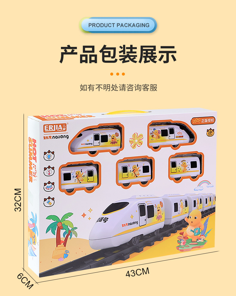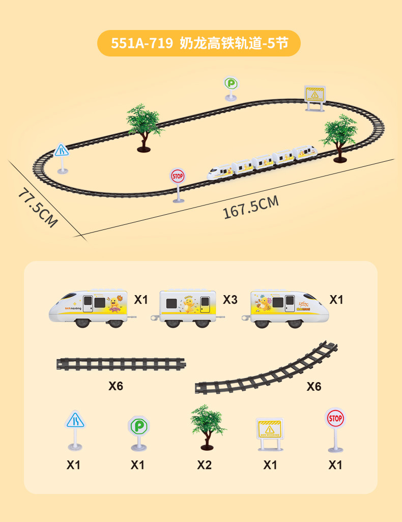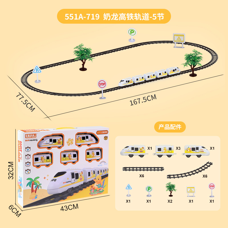 [rechargeable battery version] genuine milk dragon electric track high-speed rail: 5 carriages
