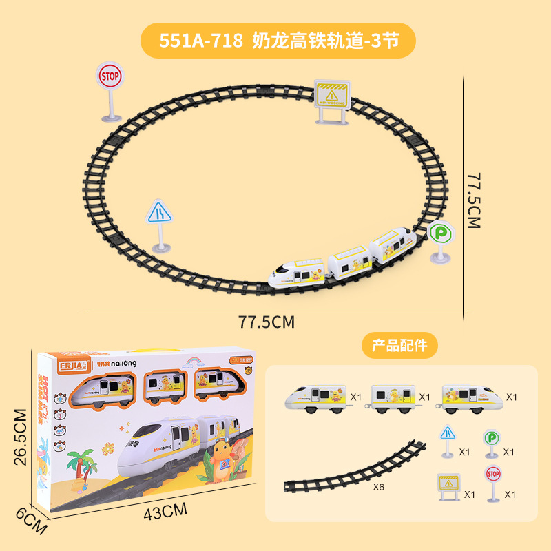[rechargeable battery version] genuine milk dragon electric track high-speed rail: 3 carriages