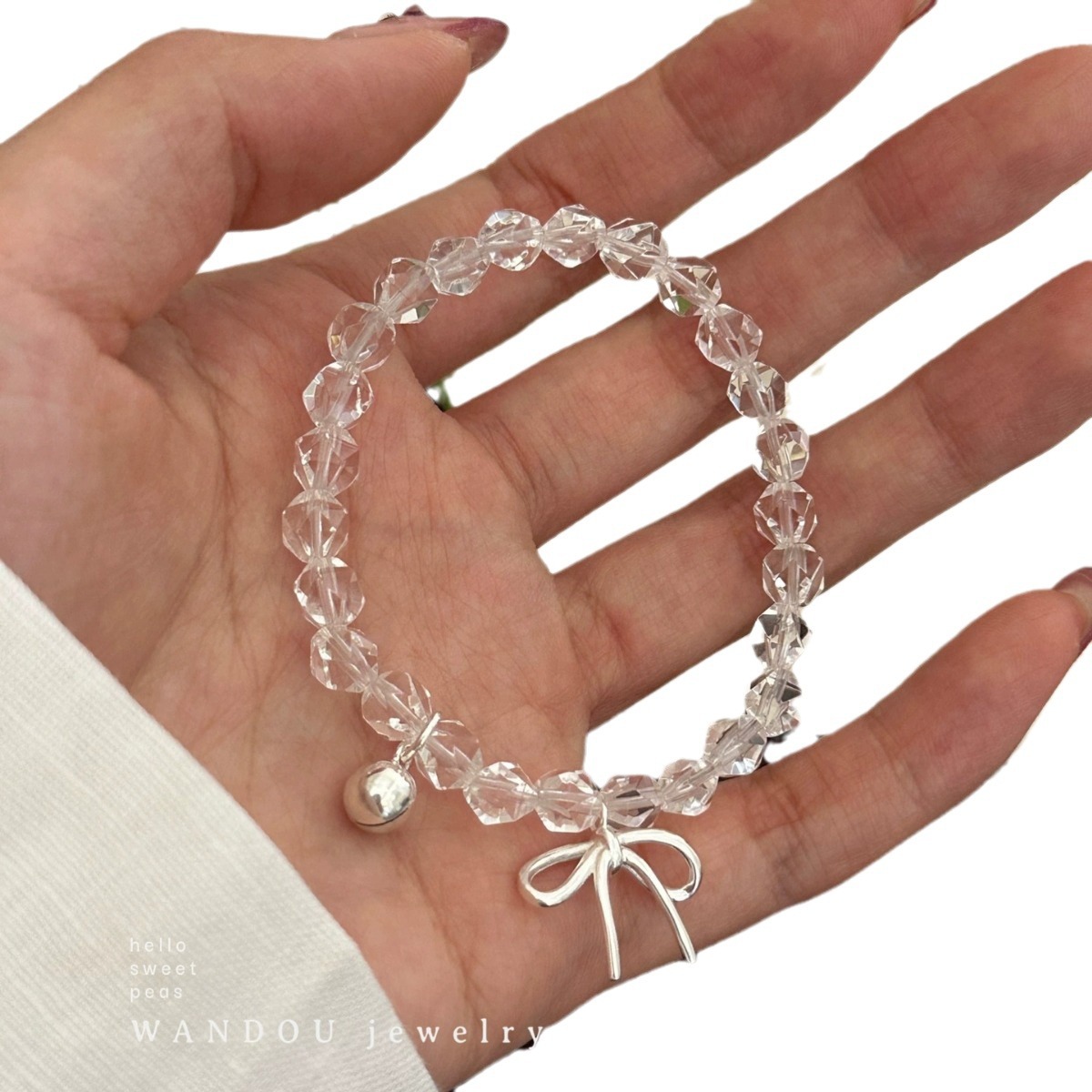 white crystal bracelet about 16cm (bell rings)