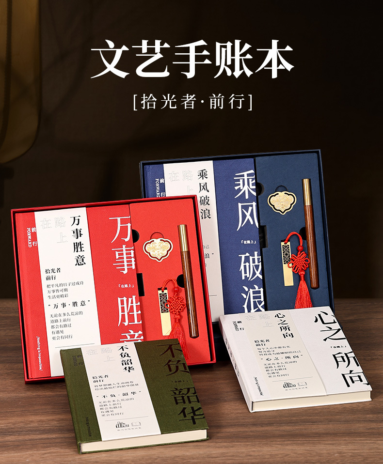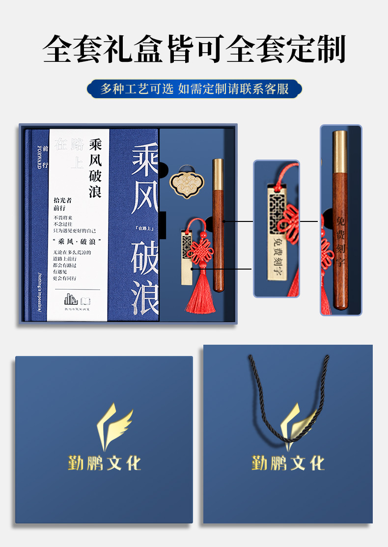 a5 blue hot silver-tassel bookmark + ebony pen + same color gift box [ride the wind and waves]]