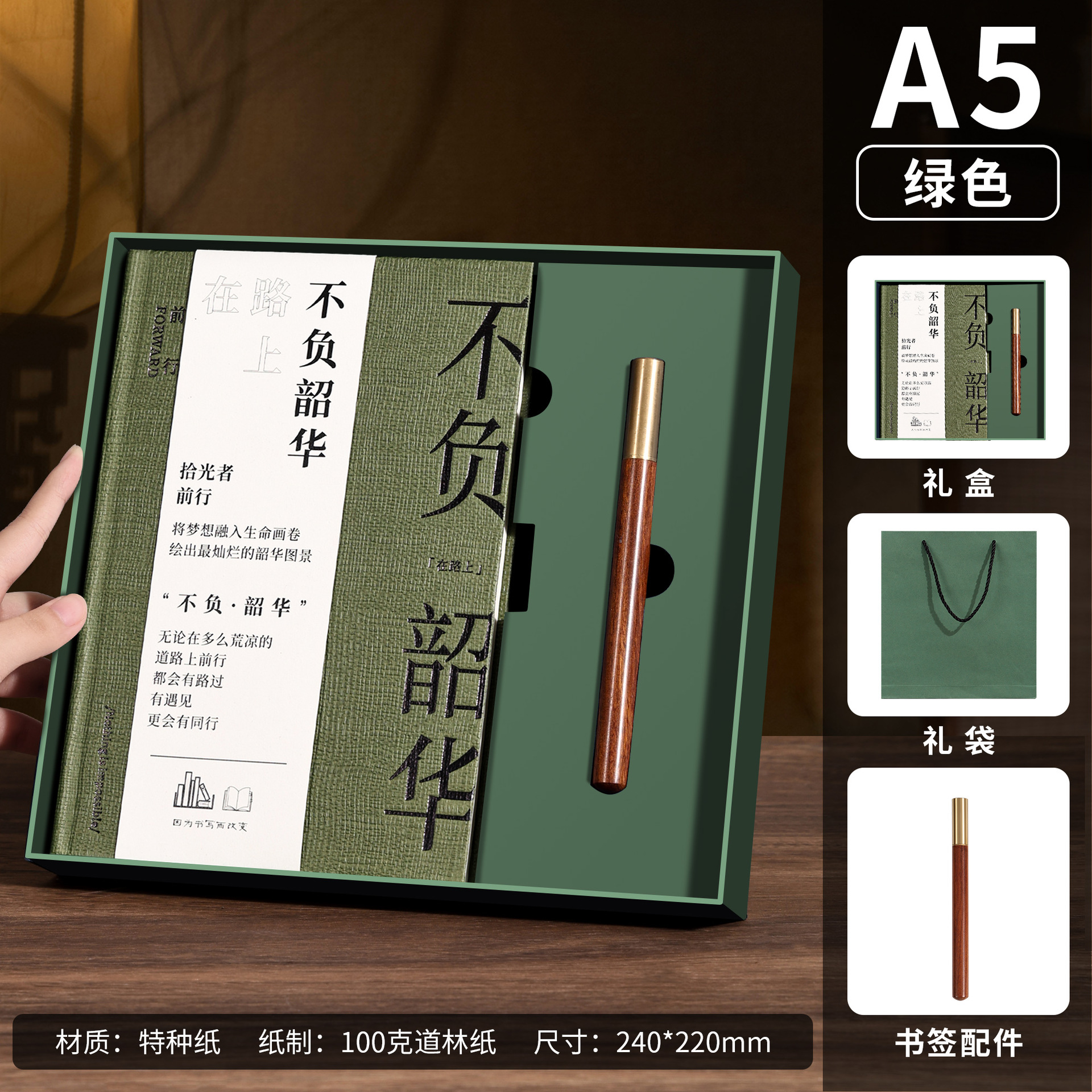 a5 green hot black-small bookmark + ebony pen + u disk + same color gift box [not negative shaohua]]