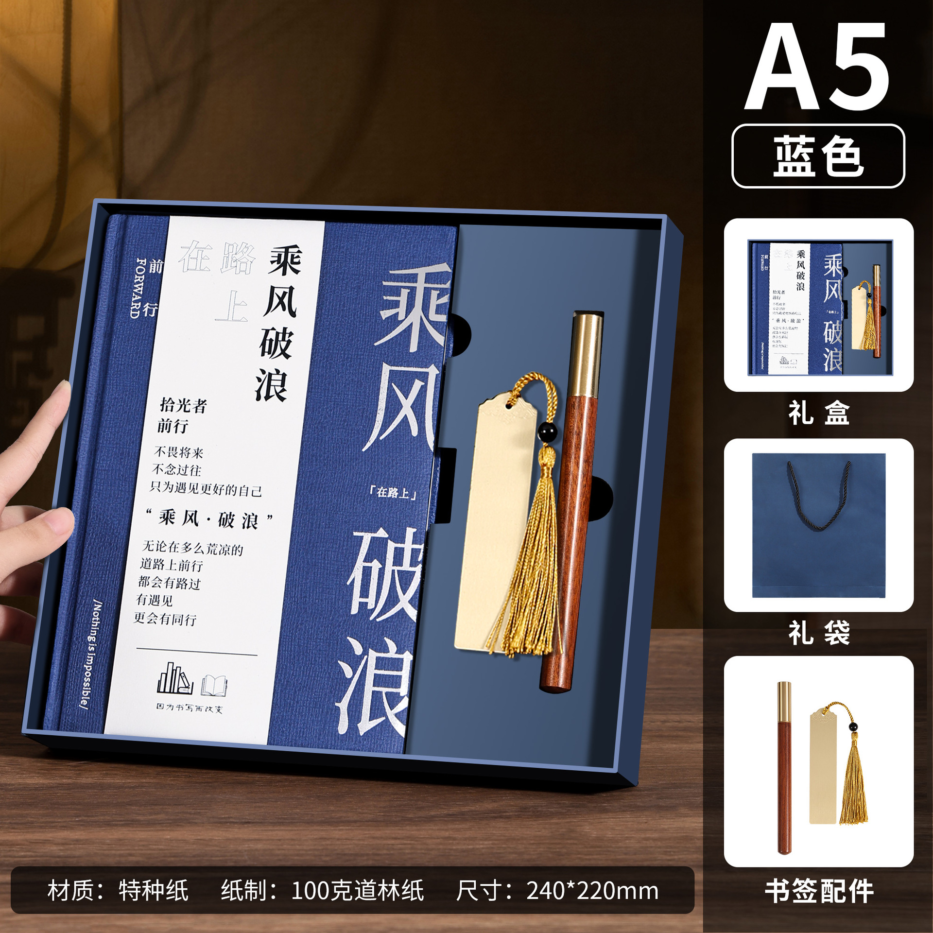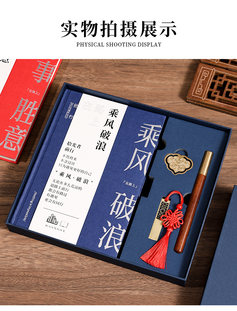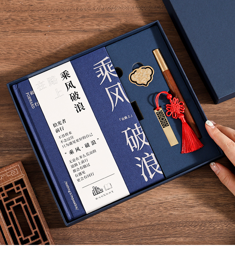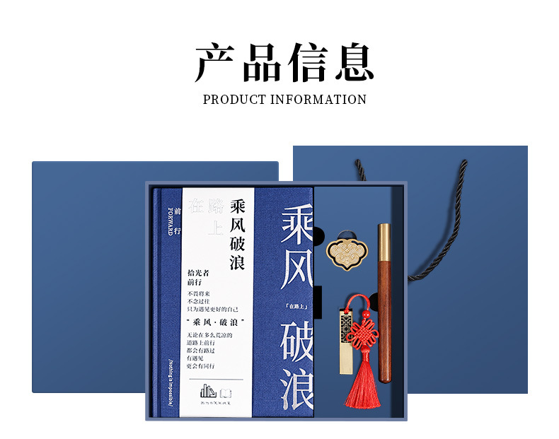 a5 blue hot silver-small bookmark + ebony pen + u disk + same color gift box [ride the wind and waves]]