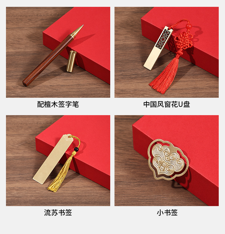 a5 red hot silver-small bookmark + ebony pen + u disk + same color gift box [everything s]]