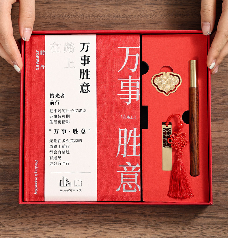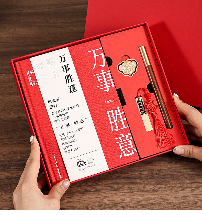 a5 red hot silver-tassel bookmark + ebony pen + same color gift box [everything s]]