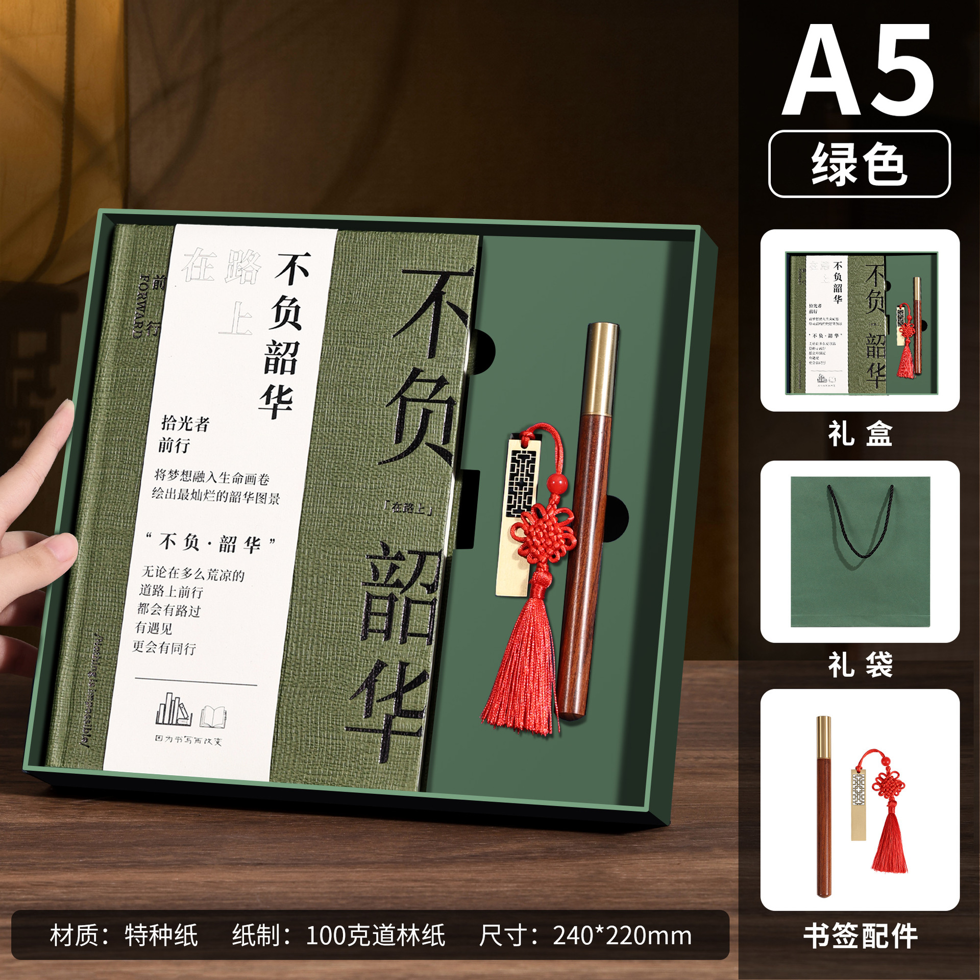 a5 green hot black-tassel bookmark + ebony pen + same color gift box [not negative shaohua]]