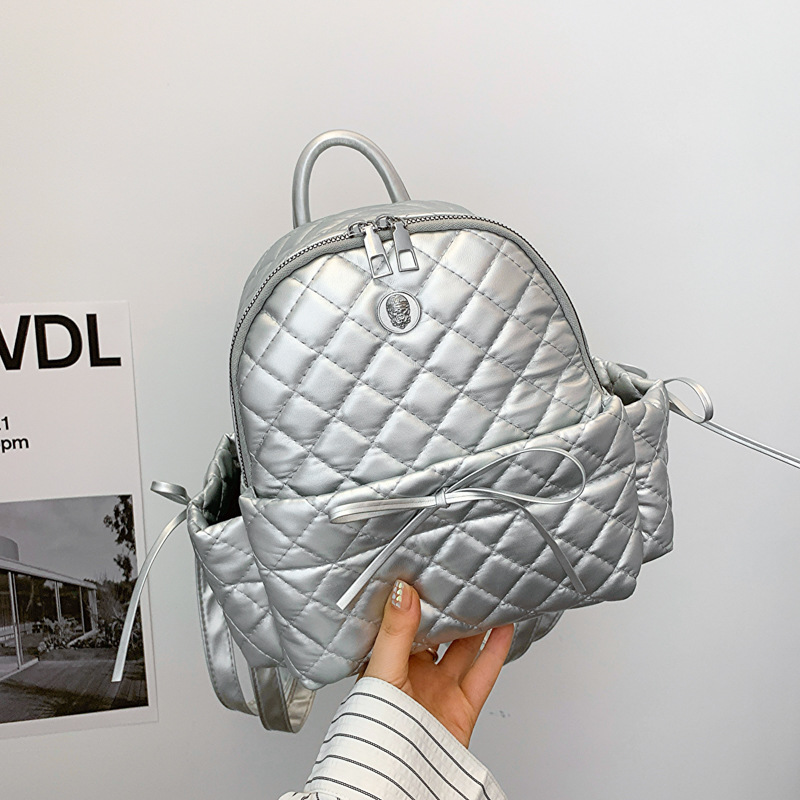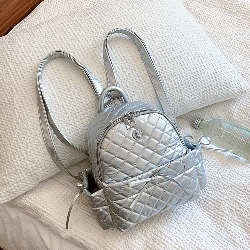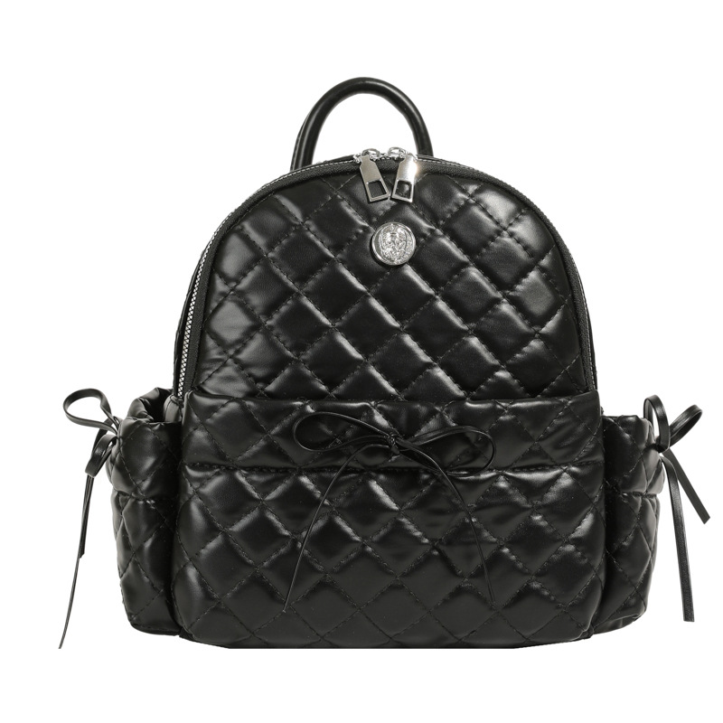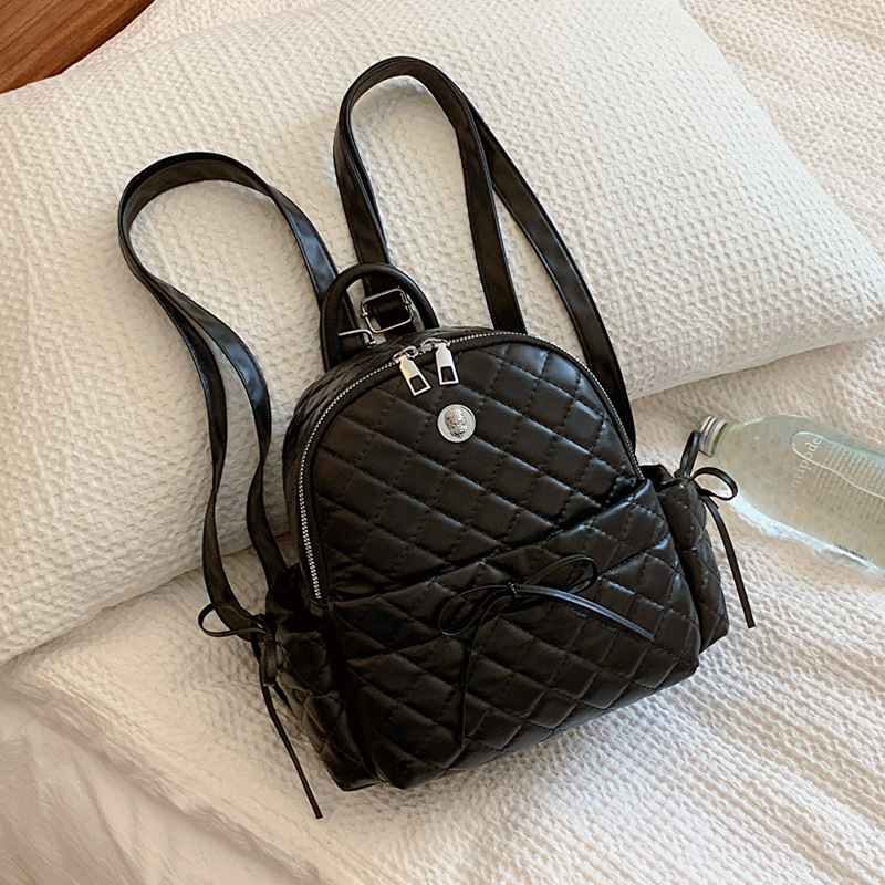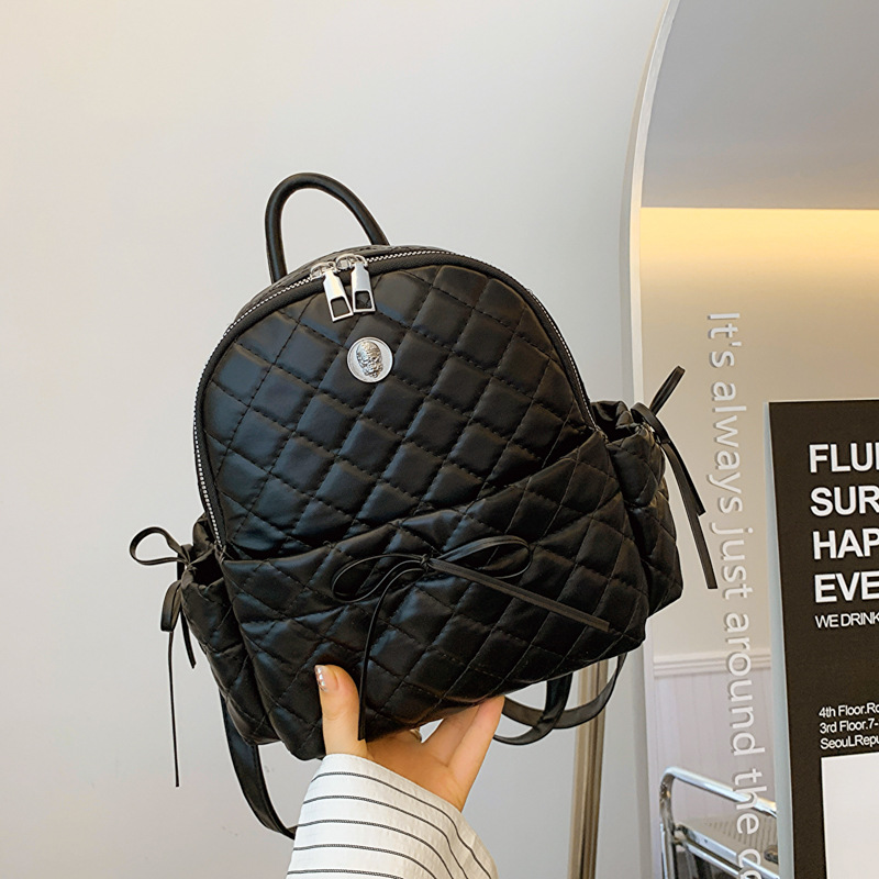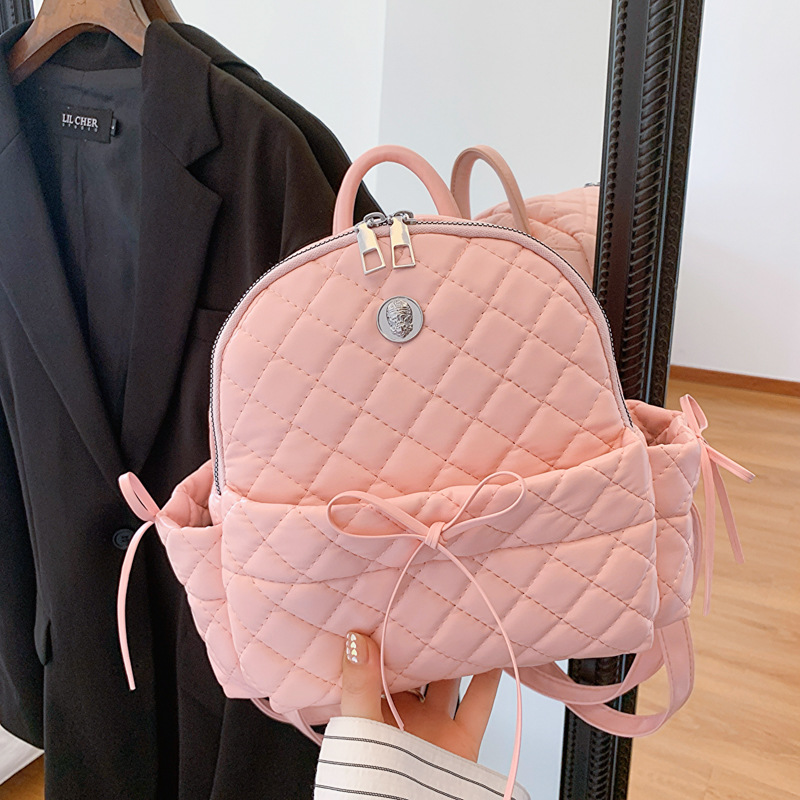 rhombic embroidery thread ladies bow backpack 2024 spring and summer new versatile ins casual bag korean style schoolbag